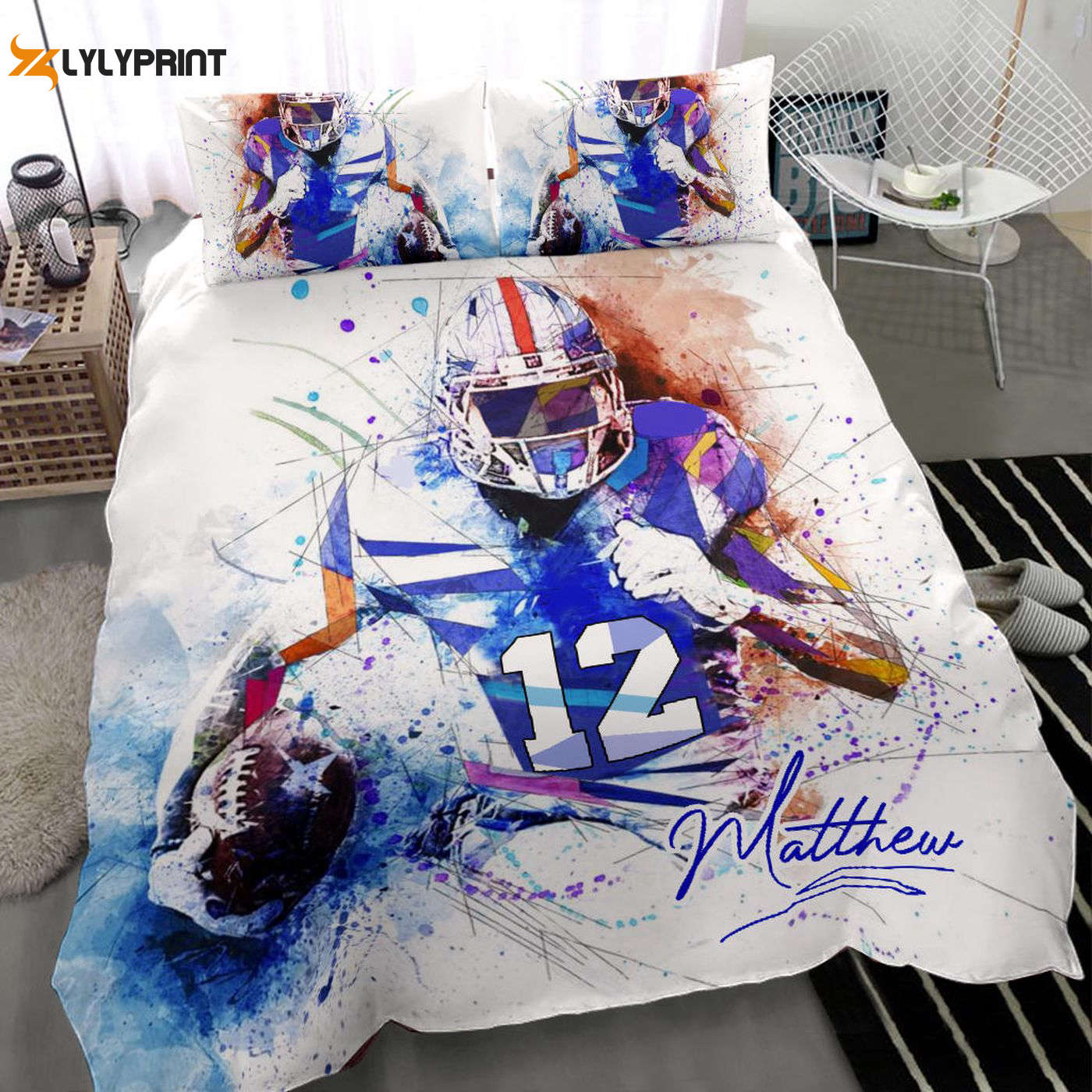 About Custom Football Duvet Cover Set: Personalized Gift with Watercolor Player Design – America Football Bedding – Perfect for Fans!