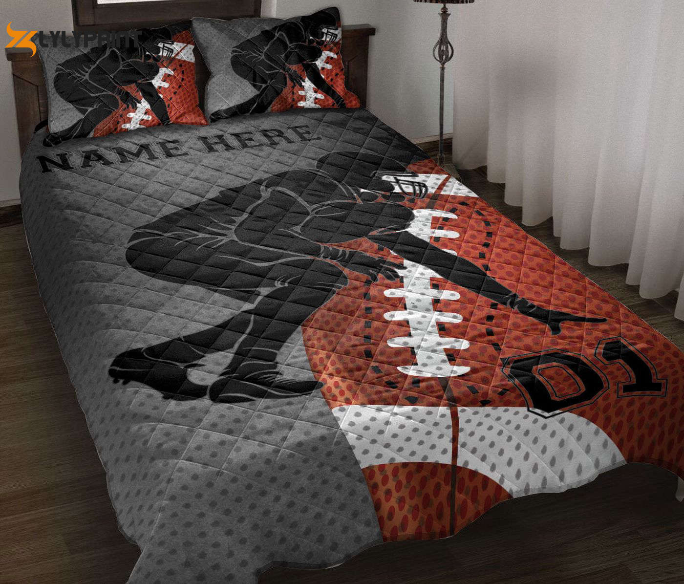 Custom Football Quilt Set – Personalized Blanket with Pillowcases Defense Player Design Name & Number – Ideal Bedding