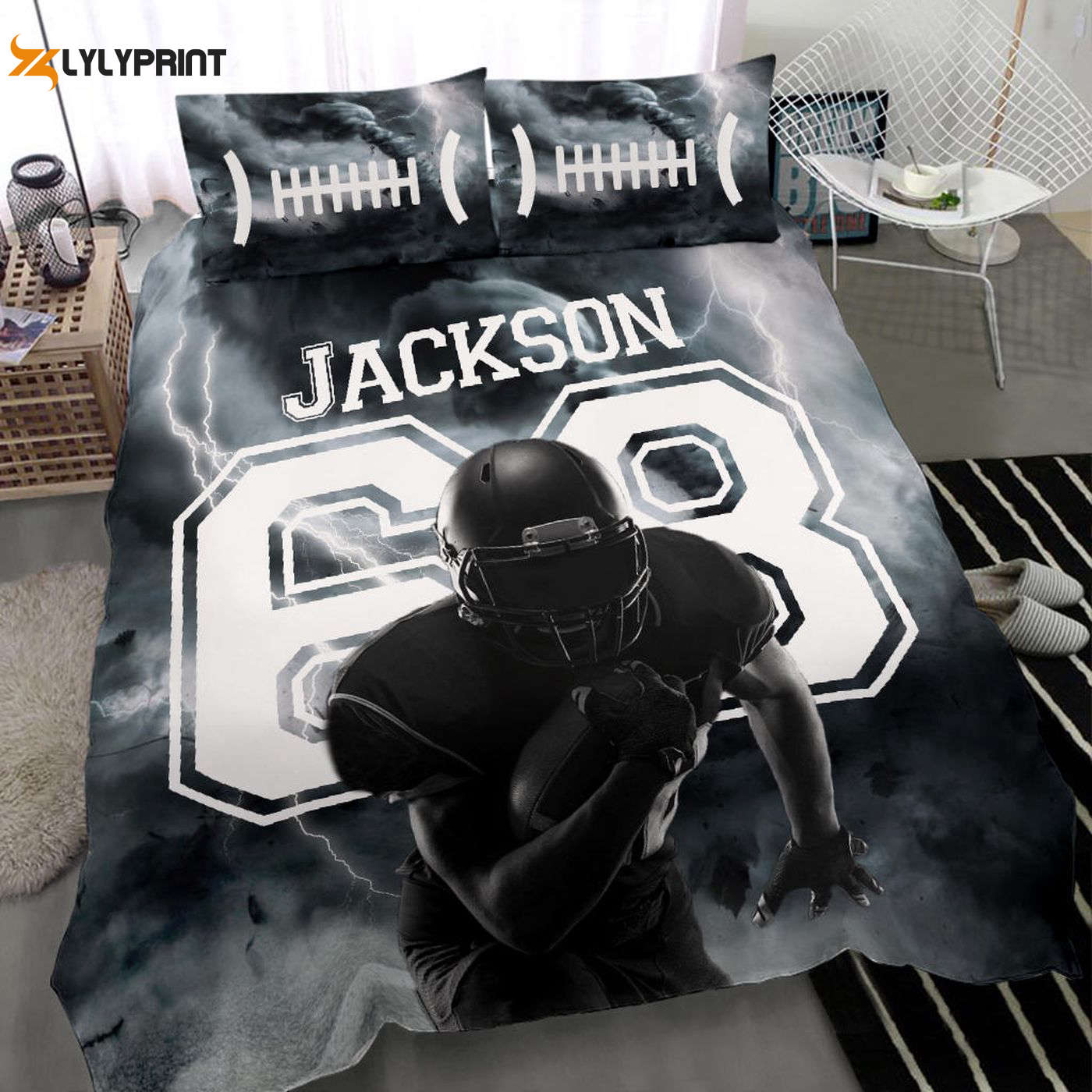 About Customizable Football Duvet Cover Set: Personalized Name & Number Bedding for Football Boys – Perfect for Fans!