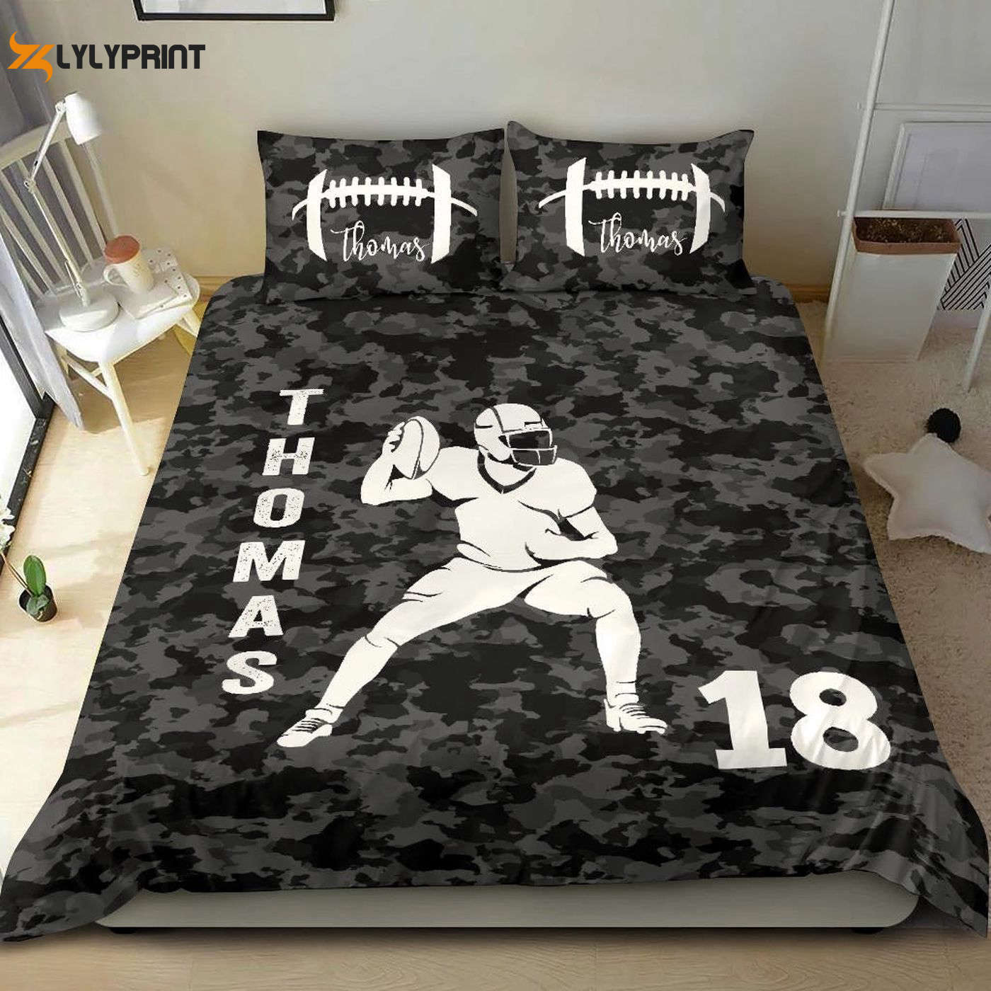 About Customizable Football Duvet Set: Personalized Name & Number Black Camo Design – Perfect for Fans!