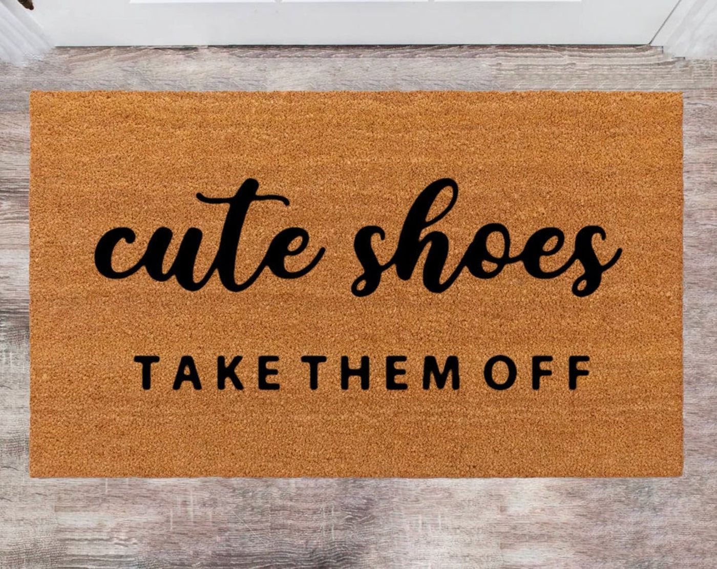 Introducing our adorable “Cute Shoes Take Them Off” front door mats, specially designed to add a touch of charm and personality to your entryway. Made with high-quality materials, these mats are not only visually appealing but also durable, ensuring long-lasting use. With their witty quote, they serve as a friendly reminder for guests to remove their shoes, keeping your floors clean and tidy. Our last name rug and monogram rug options allow you to personalize your doormat, making it a truly unique and thoughtful closing gift for friends or family. These funny doormats are sure to bring a smile to anyone’s face, creating a warm and inviting atmosphere. With the holiday season approaching, our Christmas doormats are a perfect addition to your festive decor, spreading joy and cheer to all who enter your home. Choose our door mats and experience the value of a stylish, practical, and personalized touch for your doorstep.