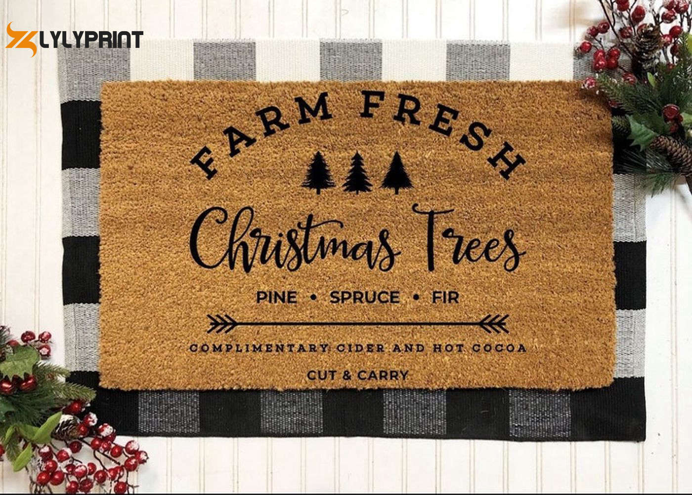 Farm Fresh Christmas Trees Door Mat – Festive Christmas Doormat for Winter Decor