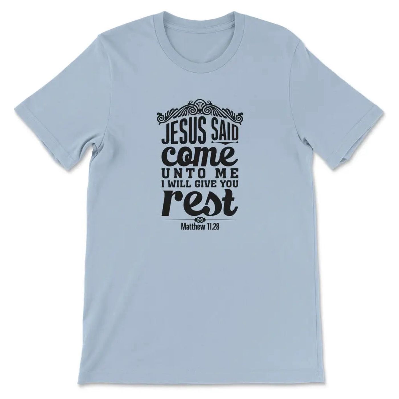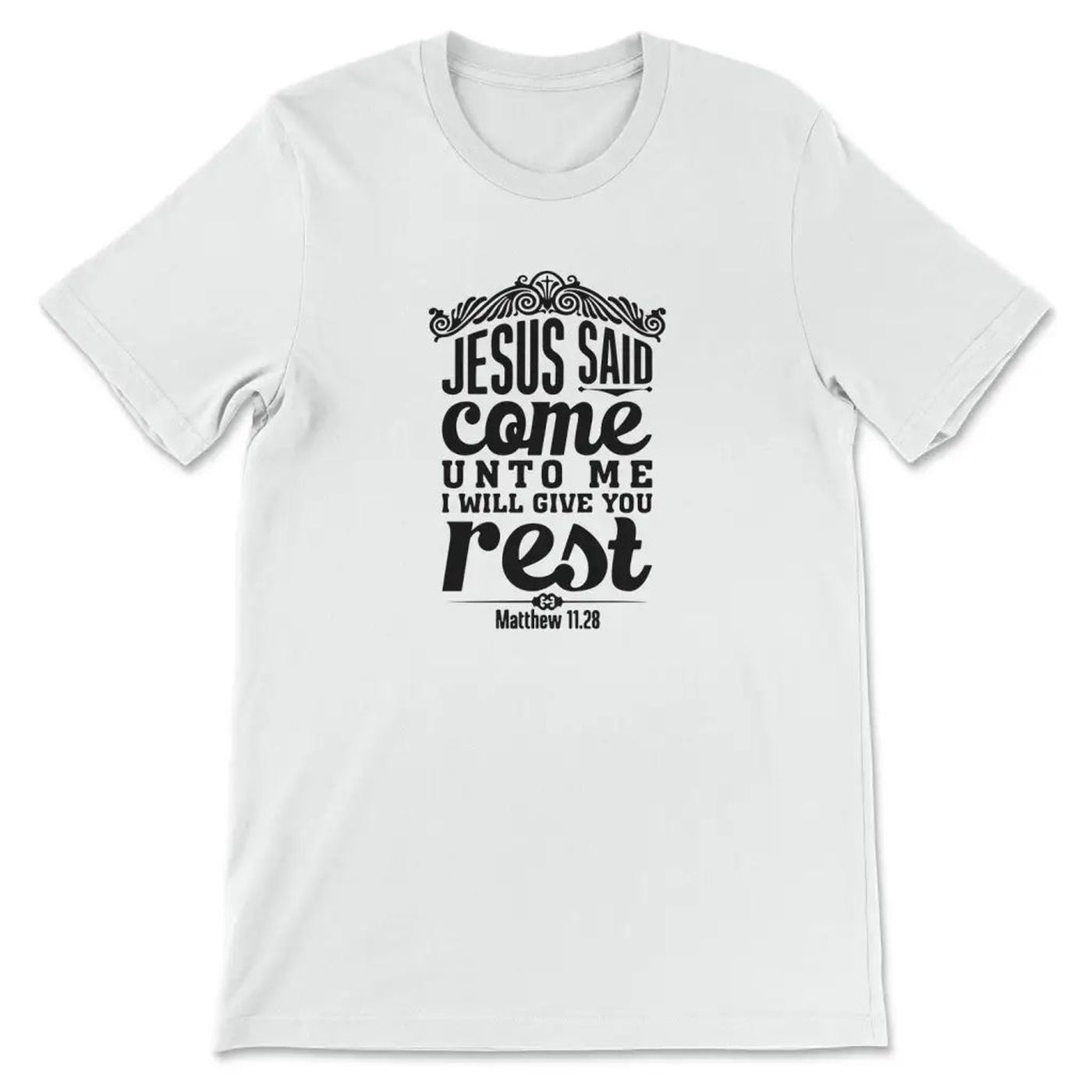 Introducing our Matthew 11:28 Jesus Said Come Unto Me I Will Give You Rest T-shirt, the perfect expression of faith and comfort. Made with premium quality materials, this shirt offers a soft and cozy feel, ensuring maximum comfort throughout the day. Its timeless design features the powerful scripture from Matthew 11:28, reminding you of Jesus’ promise to provide rest and solace. This shirt serves as a constant reminder of faith and offers a source of strength during challenging times. Embrace the tranquility and find solace in this divine garment. Experience the value of faith and comfort today!