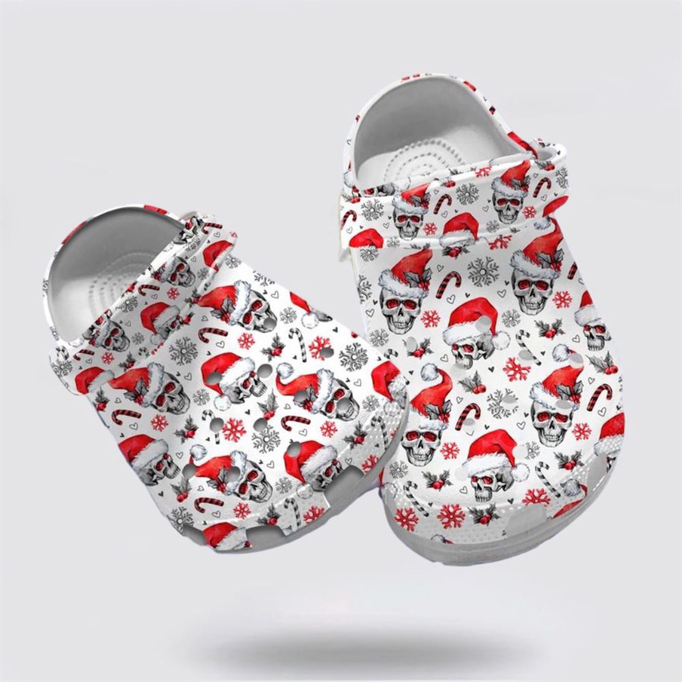 Information About Funny Skull Christmas Hat Crocs-Shoes: Festive Candys & Snowflakes for Skull Lovers