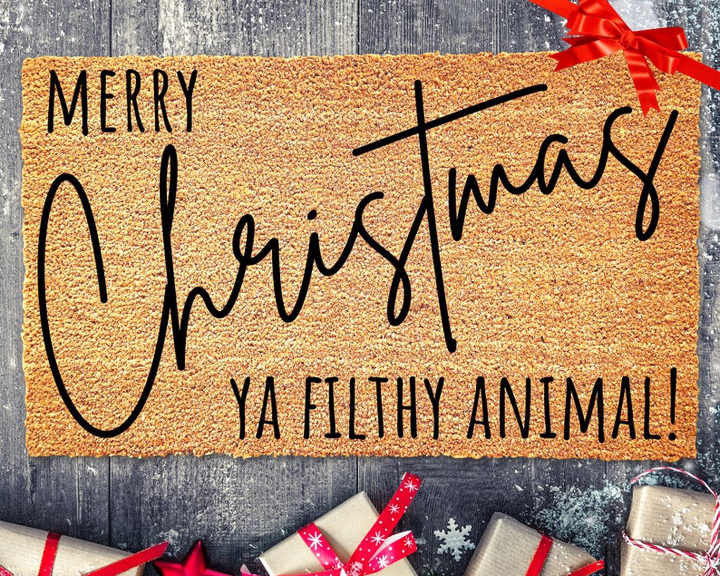 The Filthy Animal Doormat is the perfect blend of humor and functionality for your doorstep. With its hilarious Christmas-themed design, it is sure to bring a smile to your face and your guests. Made from durable materials, this funny doormat is built to withstand daily wear and tear. Its non-slip backing ensures a secure grip on any surface, preventing accidental slips. The Merry Christmas Doormat is not only a decorative piece but also serves as a barrier against dirt and debris, keeping your home clean and tidy. Its generous size provides ample coverage, making it suitable for any entrance. This Christmas Welcome Mat is an ideal addition to your holiday decor, spreading festive cheer to all who enter. Get ready to welcome your guests with a touch of humor and warmth with our Funny Christmas Doormat!