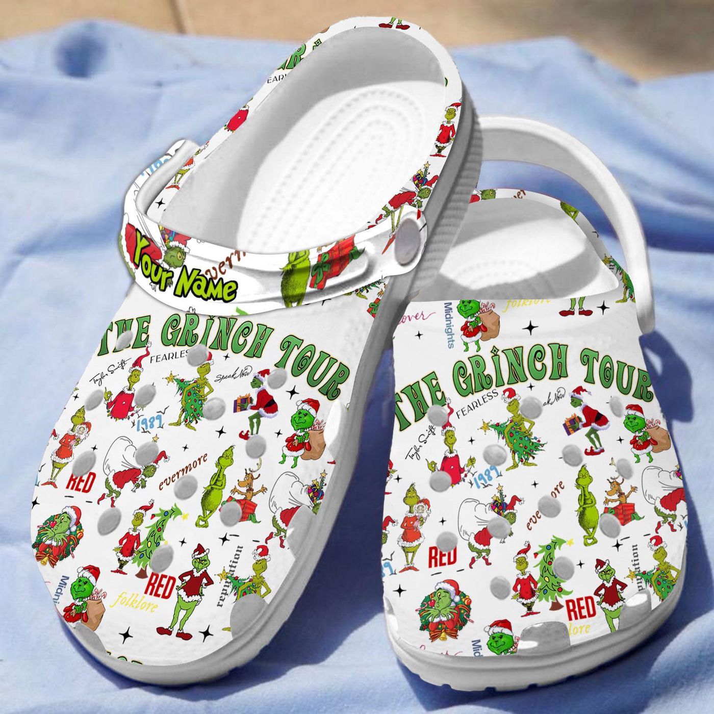Step into the holiday season with a touch of mischief and charm wearing our Personalized My Grinch Tour Christmas White Clogs. These delightful clogs are perfect for Grinch enthusiasts who want to embrace their inner holiday rebel.