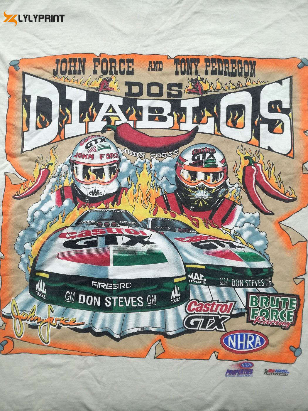 Introducing the John Force Signed Dos Diablos Tony Pedregon Dos Diablos Nhra Properties Racing Single Stitch Tshirt, a must-have for all racing enthusiasts! This exclusive t-shirt is adorned with the signature of legendary racer John Force, adding a touch of authenticity and value to your collection. Crafted with a single stitch design, it ensures durability and comfort for long-lasting wear. Showcasing the iconic Dos Diablos Nhra Properties Racing logo, this t-shirt is a statement piece that celebrates the adrenaline-fueled world of racing. Embrace your passion and stand out from the crowd with this unique piece of memorabilia. Get yours now and join the elite league of racing fans!