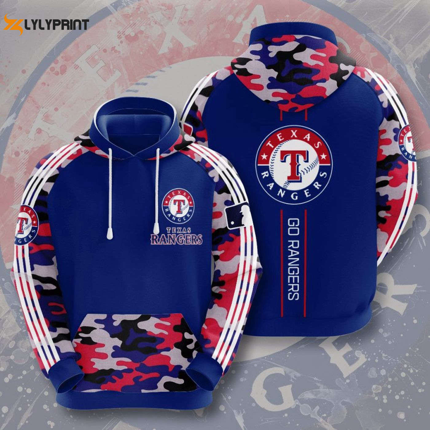 The MLB Texas Rangers Blue Red Camo Pullover Hoodie AOP Shirt is the perfect addition to any Rangers fan’s wardrobe. Made with premium materials, this hoodie offers both comfort and style. The all-over camo print adds a unique touch, making it stand out from other fan apparel. With its pullover design and hood, it provides warmth and protection during chilly game nights. The shirt proudly displays the Texas Rangers logo, showcasing your team spirit wherever you go. Whether you’re cheering from the stands or watching from home, this hoodie is a must-have for any true Rangers supporter. Show your love for the team and stay cozy with this MLB Texas Rangers Blue Red Camo Pullover Hoodie AOP Shirt.