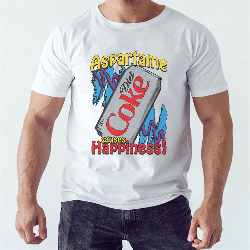 Embrace happiness and spread joy with the Official Aspartame Causes Happiness Coke Diet T-Shirt. Order yours today and be prepared to make a statement wherever you go!
