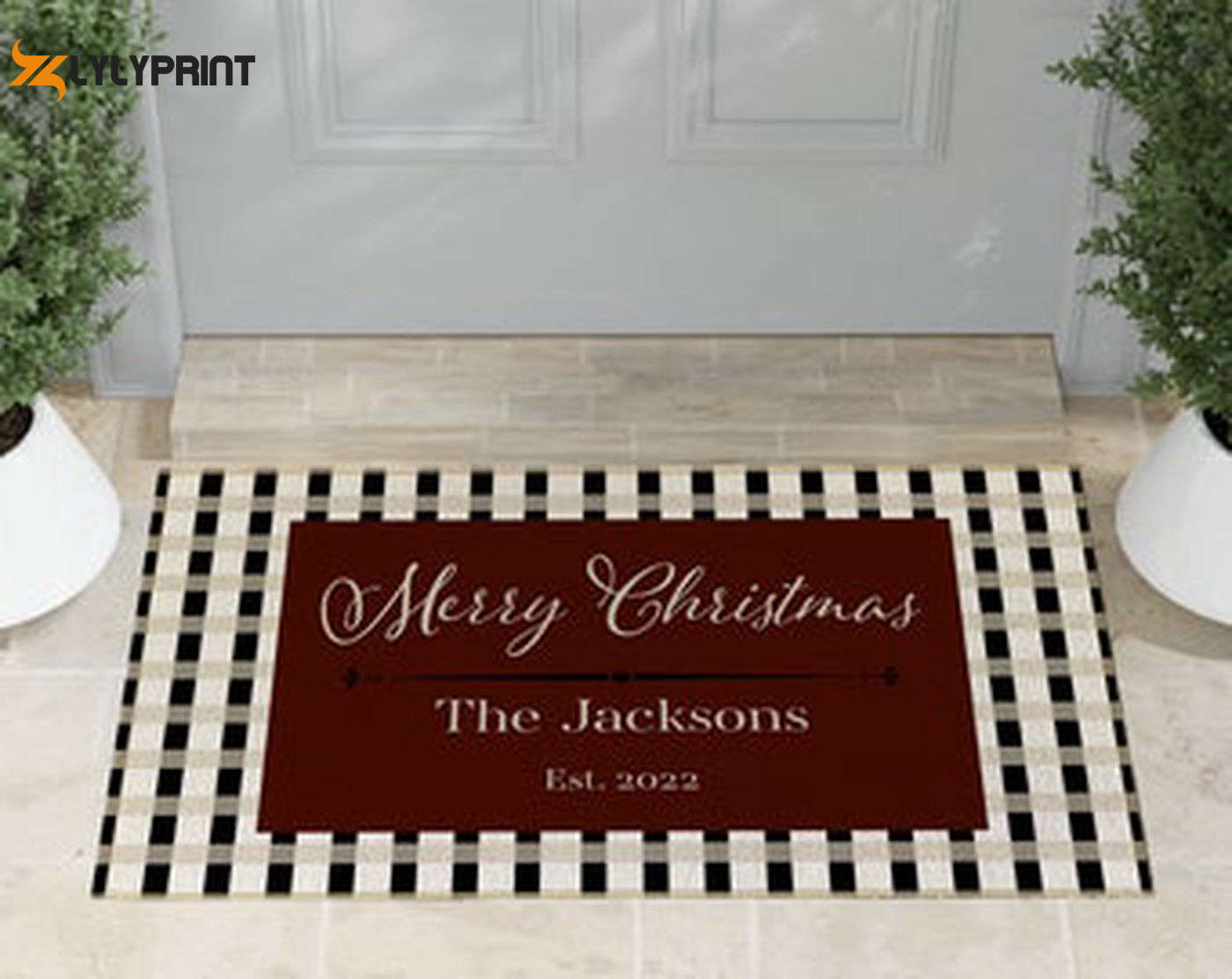 Introducing our Merry Christmas Door Mat, the perfect addition to your festive decor! This Christmas Doormat is not only a Homewarming Gift, but also a heartwarming First Christmas Gift for new homeowners. Made with high-quality materials, it features a charming plaid design and can be Personalized with your Family Name, adding a special touch to your doorstep. The durable construction ensures long-lasting use, while the non-slip backing keeps it securely in place. Embrace the holiday spirit and welcome your guests with warmth and style. Spread joy and make lasting memories with this delightful and practical Plaid Christmas Mat. Buy now and elevate your Christmas celebrations!