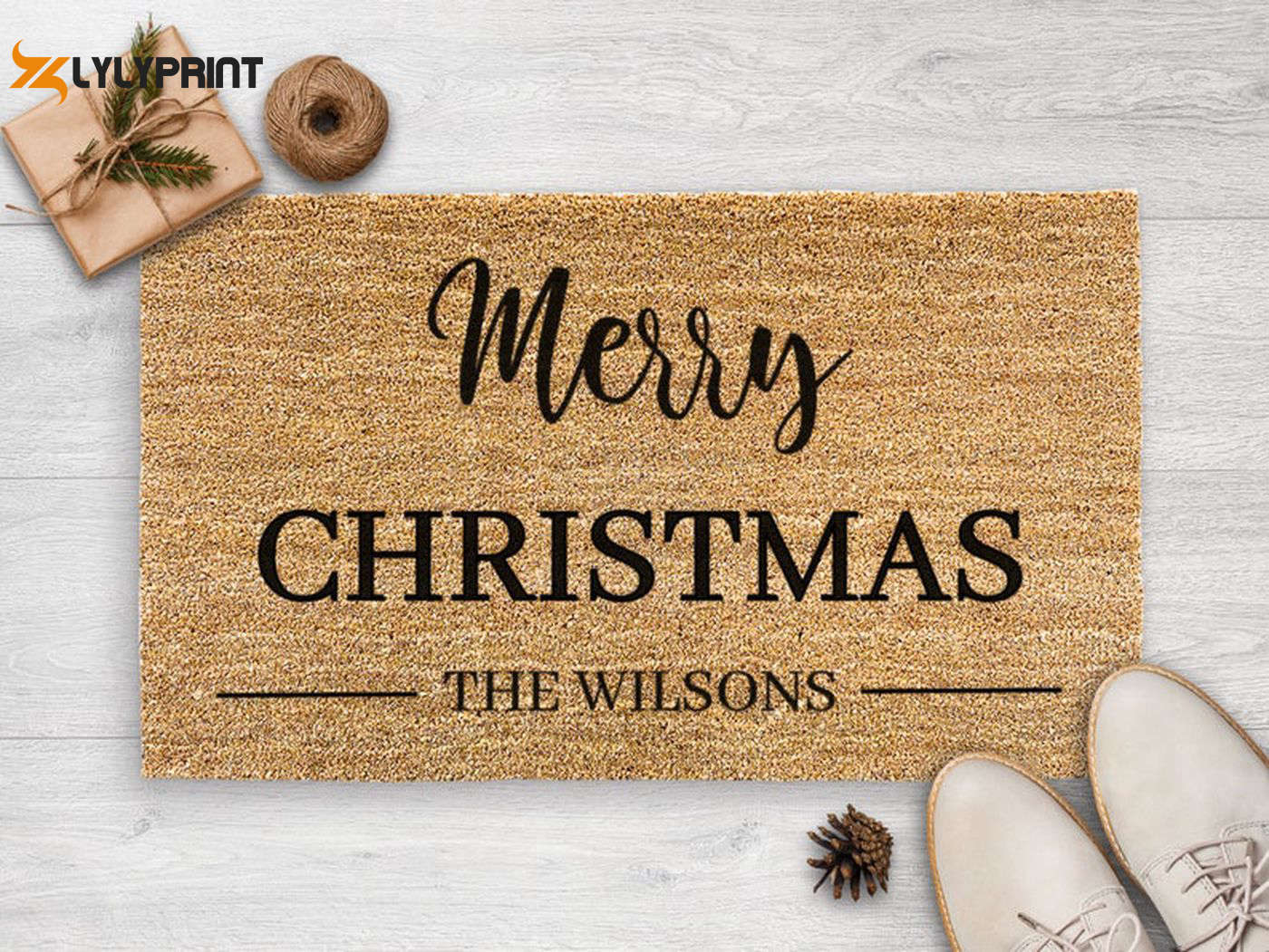Home Doormats Personalized Merry Christmas Family Mat – Perfect New Home & Housewarming Gift Festive Christmas Decor