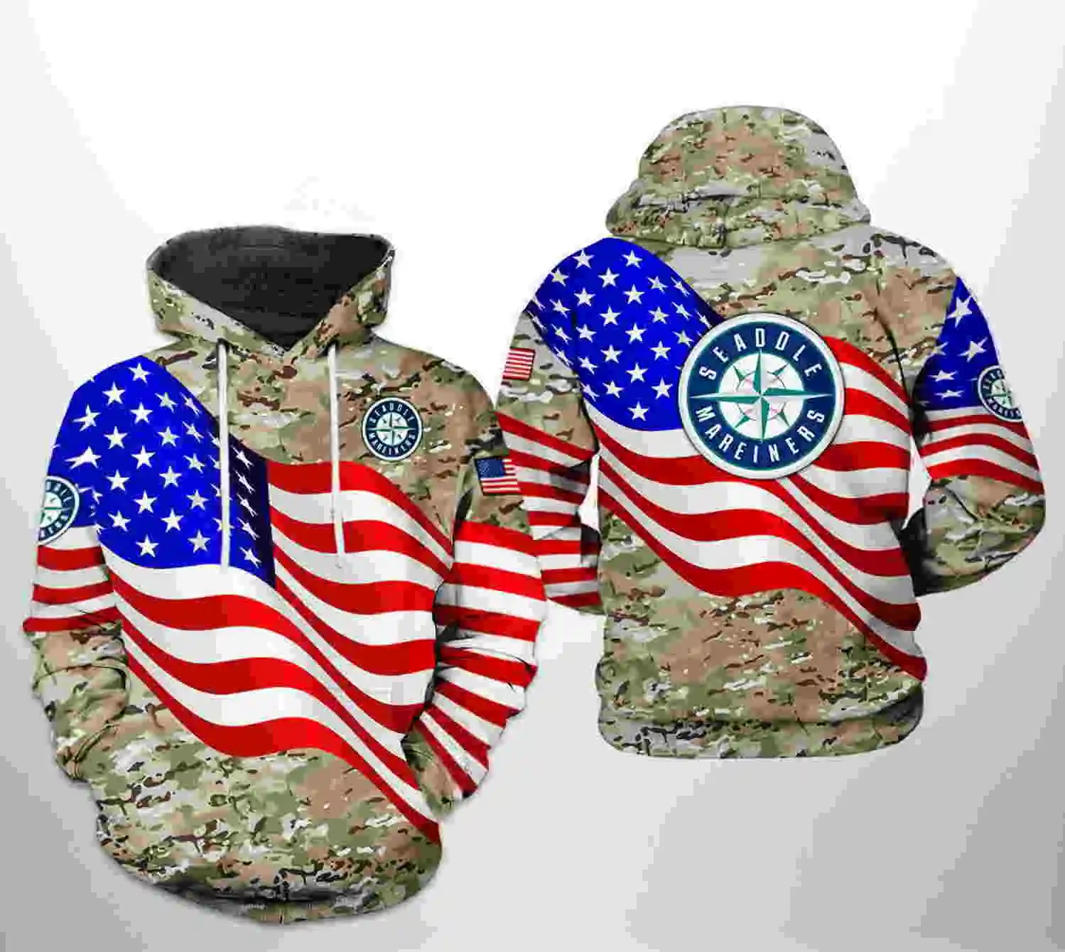 Introducing the Seattle Mariners MLB US Flag Camo Veteran 3D Hoodie Zipper Hoodie AOP Shirt! Show your unwavering support for the Mariners while honoring our brave veterans with this stylish and patriotic hoodie. Made from premium quality materials, it features a unique 3D design that truly stands out. The US flag camo pattern adds a touch of patriotism, making it the perfect choice for any Mariners fan. The hoodie is not only fashionable but also functional, with a convenient zipper closure and a cozy hood to keep you warm during chilly game nights. Whether you’re attending a game or simply hanging out with friends, this hoodie is sure to make a statement. It’s a great way to showcase your love for the Mariners and express gratitude to our veterans. Don’t miss out on this exceptional piece of apparel that seamlessly combines style, comfort, and patriotism. Get yours today and be the envy of every Mariners fan!