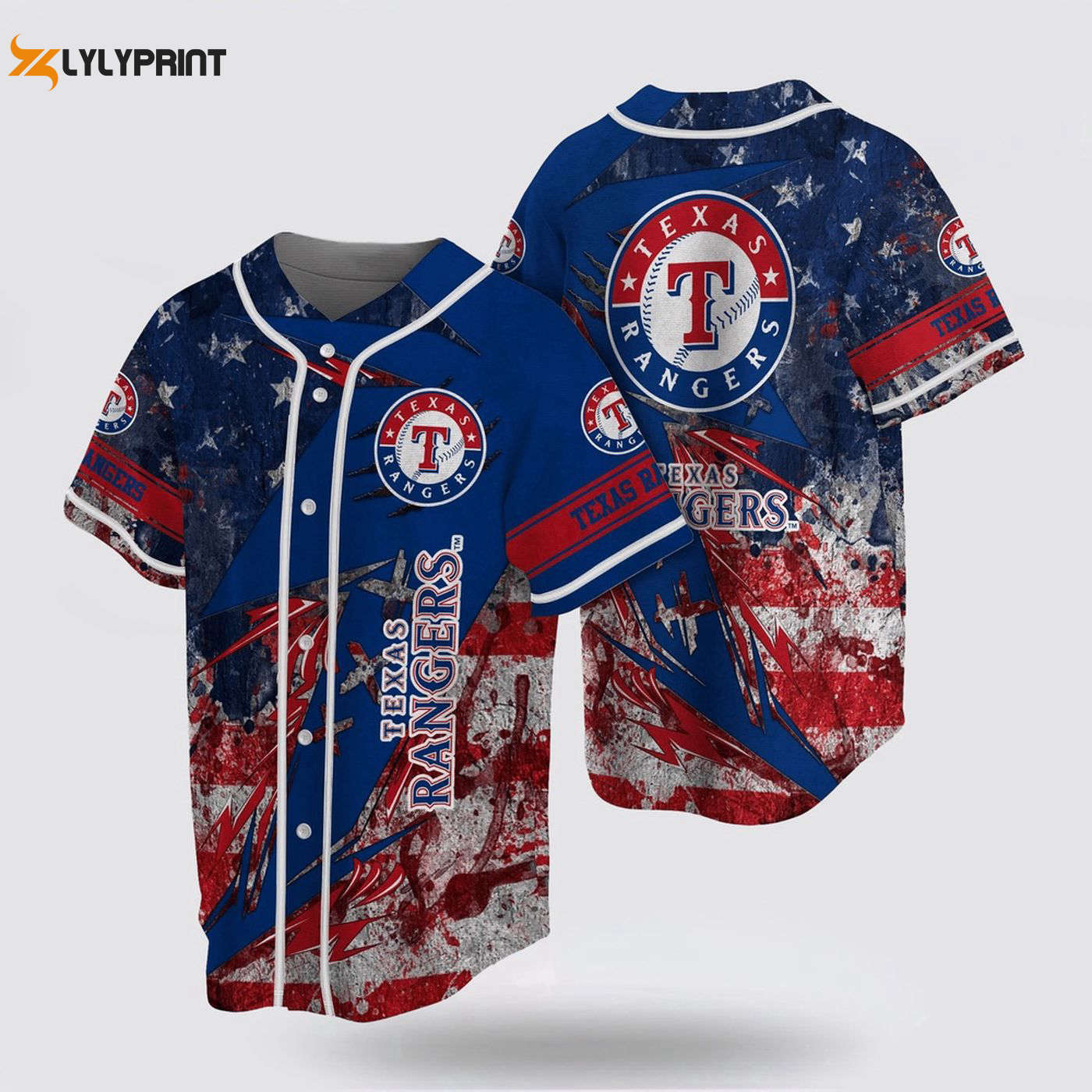 Show Your Patriotism with MLB Texas Rangers Baseball Jersey – US Flag Design for True Fans! – Gift for Men Women Information