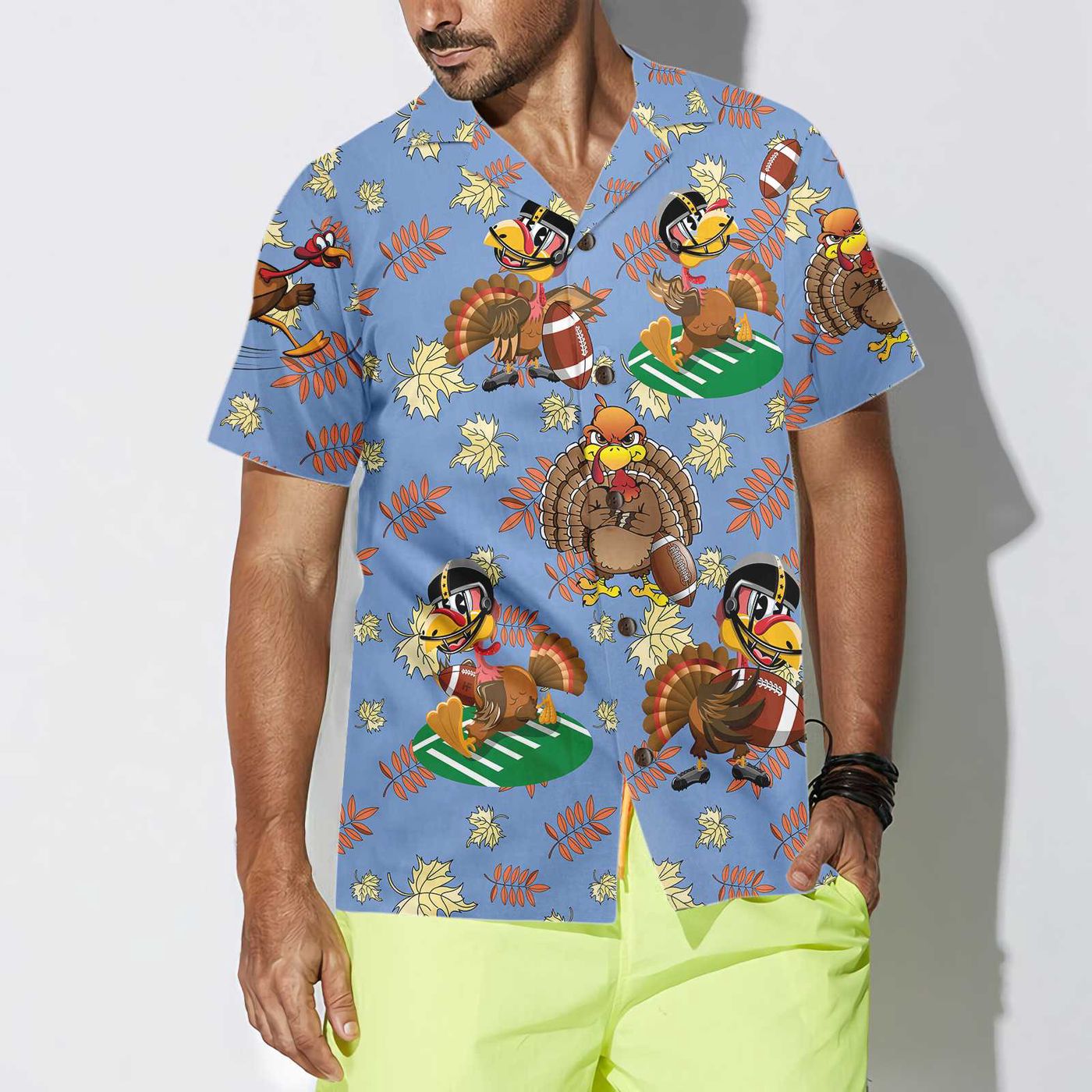 About Thanksgiving Hawaiian Shirt: Funny Turkey Playing American Football – Perfect Gift for Thanksgiving Day information: