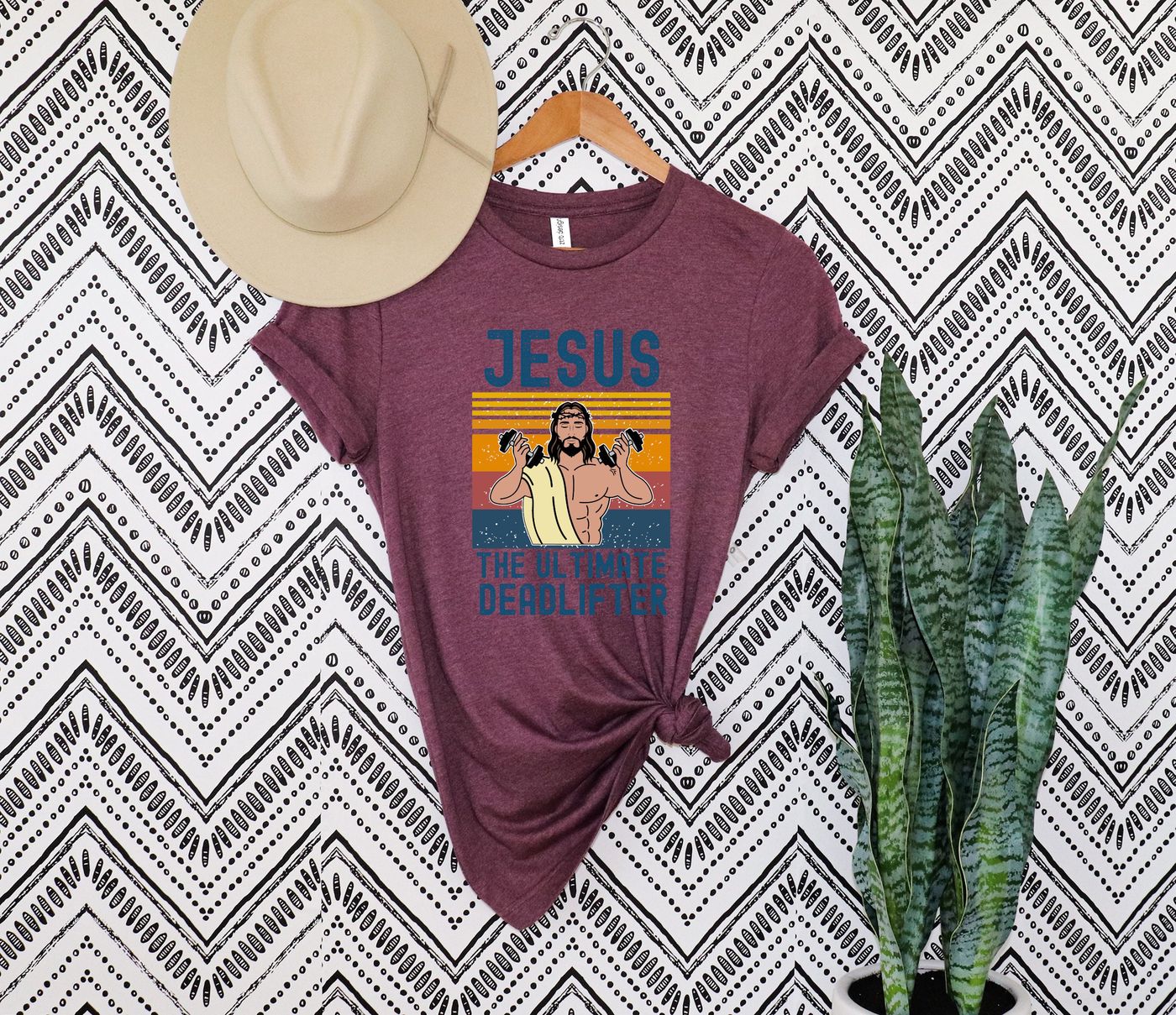 The Ultimate Deadlifter Shirt is designed for those who love weightlifting and have unwavering faith in Jesus. Made with premium quality fabric, this shirt offers ultimate comfort and durability. The unique design showcases a cute Jesus graphic, adding a touch of humor to your attire. Whether you’re hitting the gym or going for a casual outing, this Funny Vintage Christian Shirt will make you stand out from the crowd. Embrace your religious faith and show off your passion for weightlifting with this Religious Faith Gym Shirt. It not only expresses your beliefs but also motivates you to push your limits during workouts. With its perfect fit and trendy style, this Weightlifting Jesus Tee offers both fashion and functionality. Get ready to spread positivity and inspire others with this captivating shirt that truly represents your personality and values.