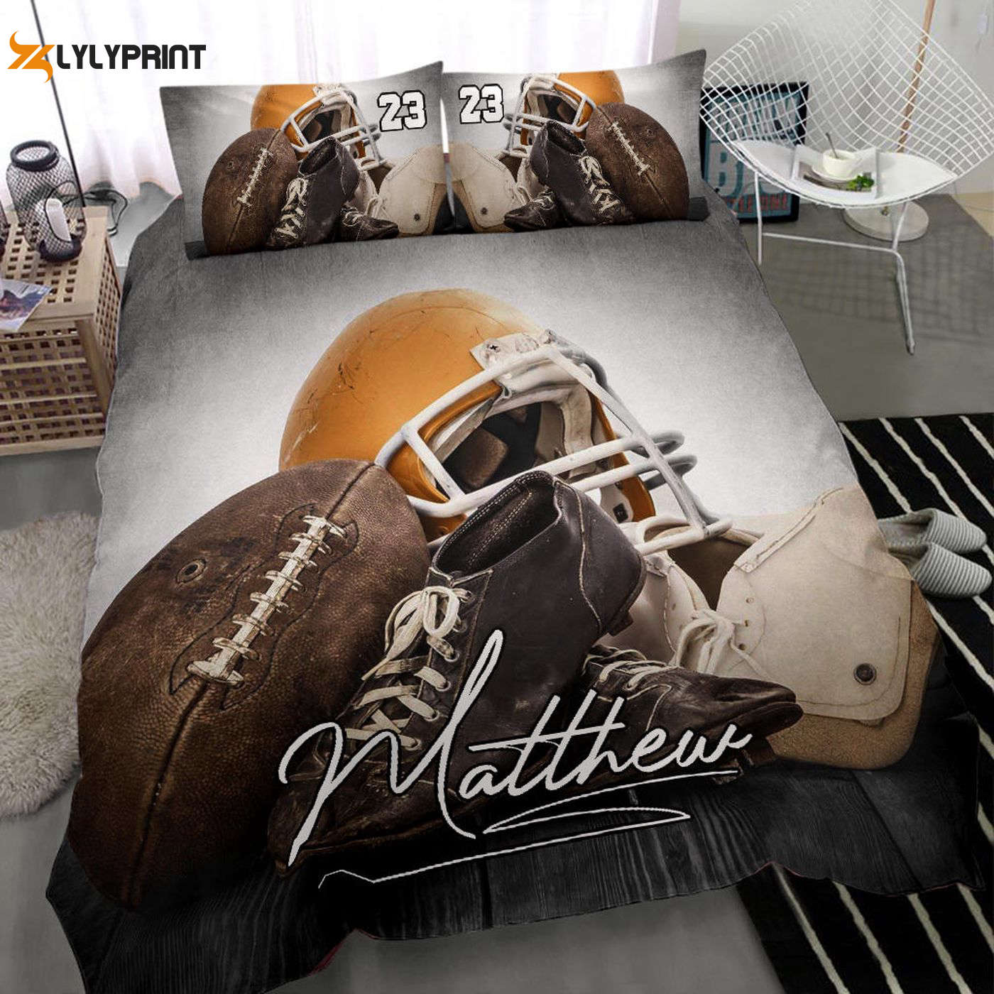 Home Bedding Sets Vintage Player Personalized Football Duvet Cover Set – America Football Bedding