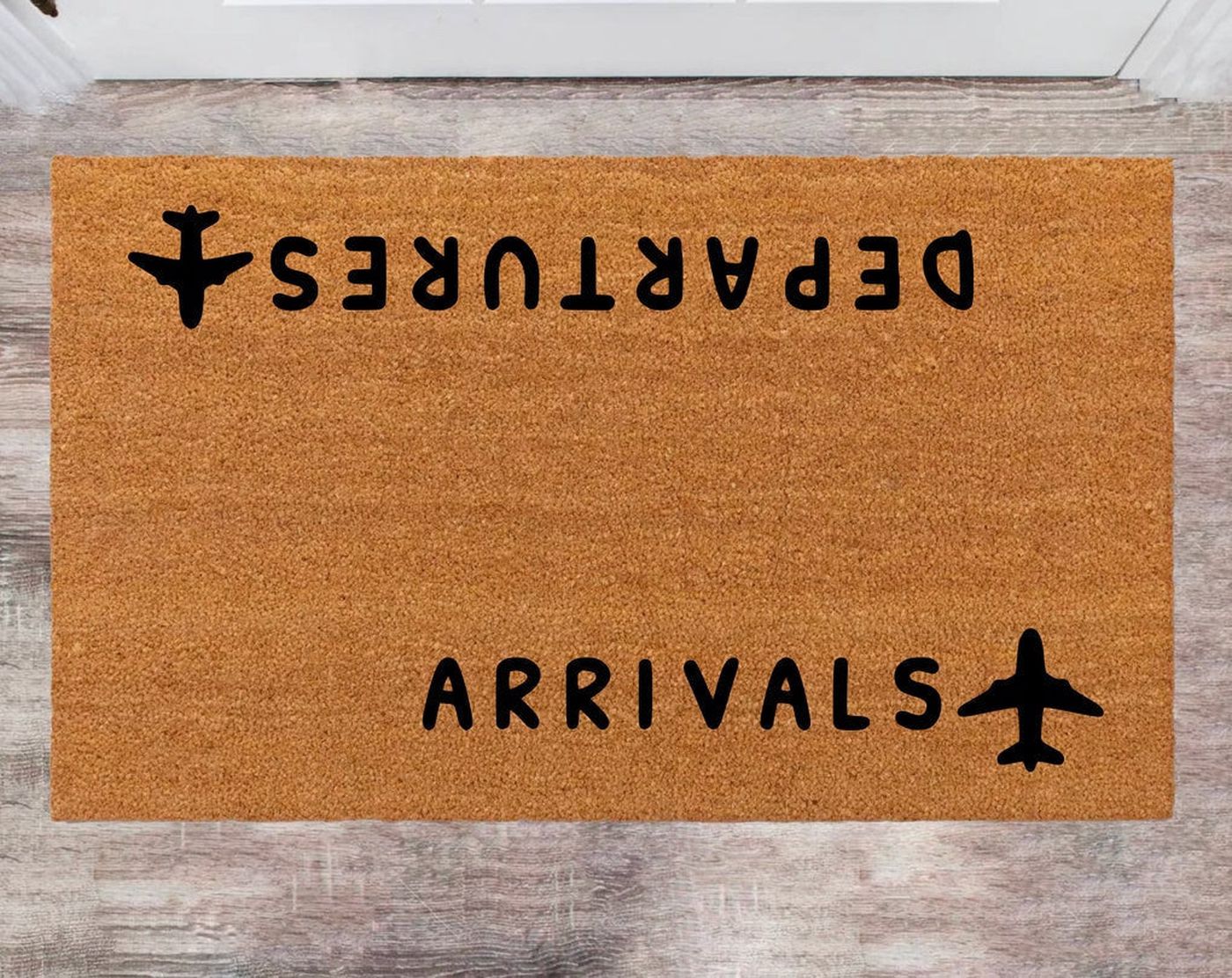 Departures, Arrivals: Welcome guests with our elegant doormats! Crafted with premium materials, these rugs feature a timeless design that complements any home decor. The durable construction ensures long-lasting use, while the non-slip backing keeps them securely in place. Create a warm and inviting atmosphere for visitors, making them feel instantly at home.