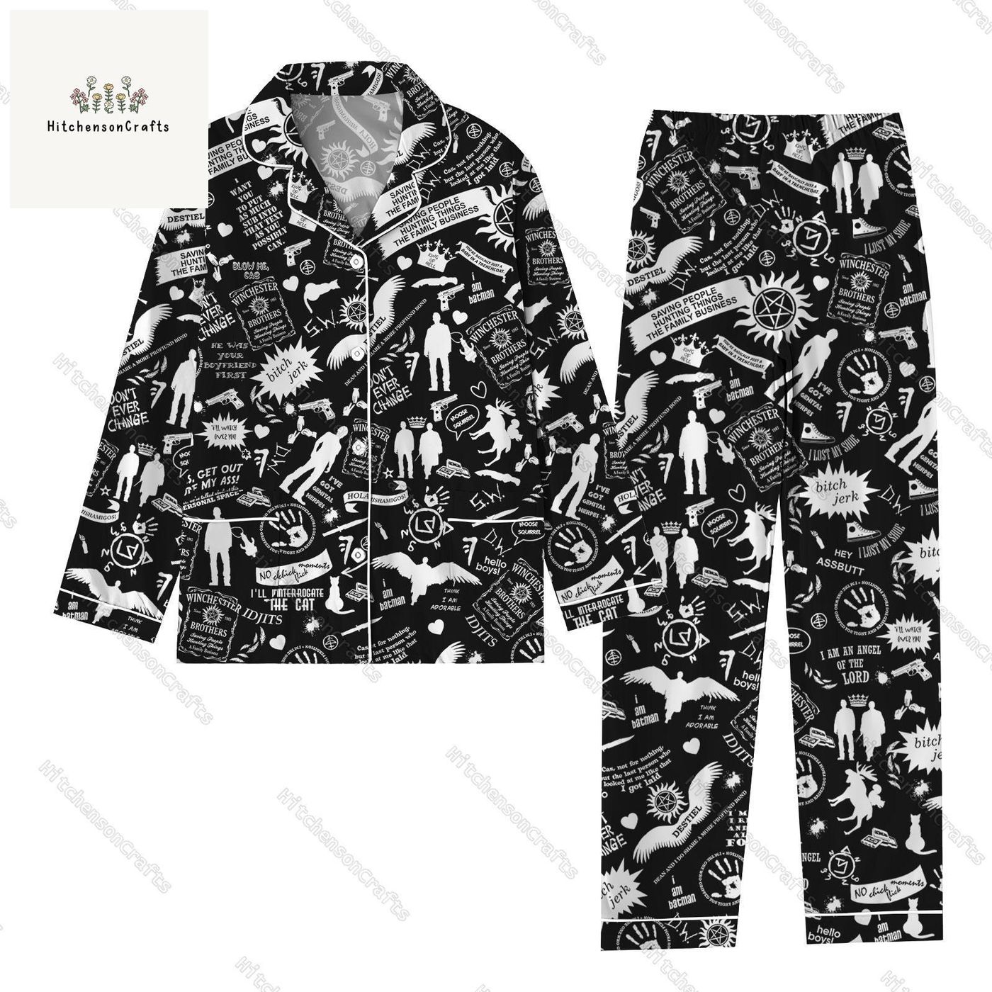 Introducing our Supernatural Pajamas Set, designed for die-hard fans of the hit TV show! Get ready for cozy nights with our Winchester Matching Pajamas, featuring iconic symbols and quotes. Perfect for the holiday season, our Sam and Dean Pajamas Christmas edition will make you feel like part of the Winchester family. Made with premium materials, these Movie Pajamas are comfortable and durable, ensuring a good night’s sleep. The Supernatural Gifts included in this set are a must-have for any fan, adding a touch of magic to your everyday life. Grab this limited edition bundle now and embrace your inner hunter!